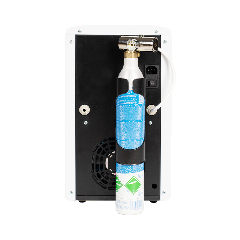 Funkcjonalnie dozownik oferuje intuicyjne działanie, umożliwiając użytkownikom bez wysiłku dostęp do schłodzonej, gazowanej wody za dotknięciem przycisku.